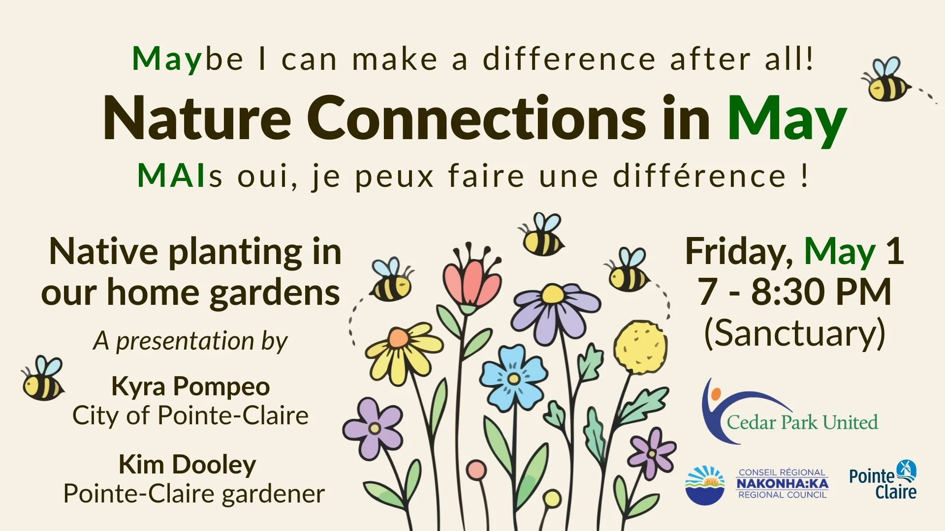 This presentation kicks off a month of Nature Connections in our neighbourhood: Together as neighbours, we'll discover that just MAYbe I can make a difference after all!