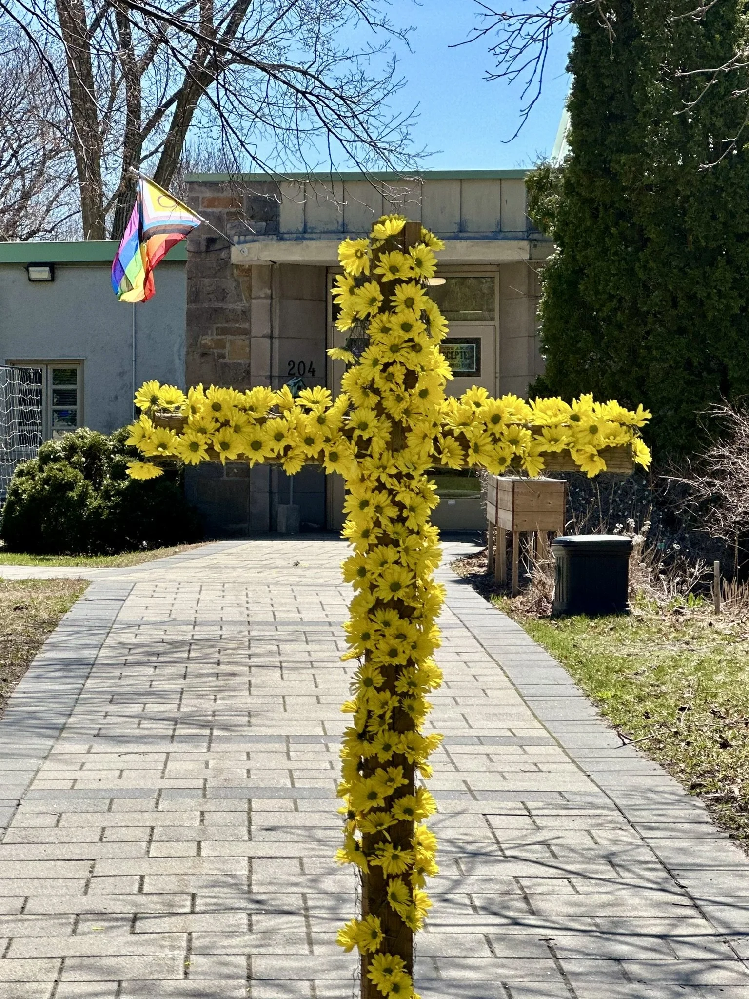 Then at 10 AM, onsite, online, together, we will celebrate the Resurrection together at 204 Lakeview, ending with the traditional flowering of the cross on the front walkway.